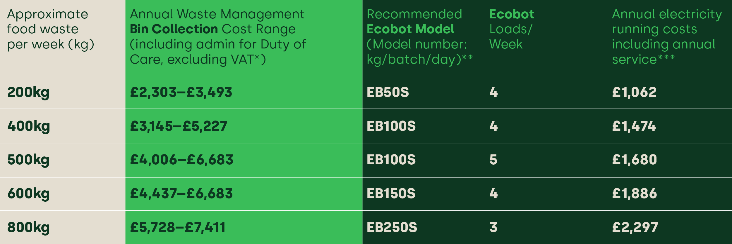 *** Estimate based upon machine data and average current energy business tariffs